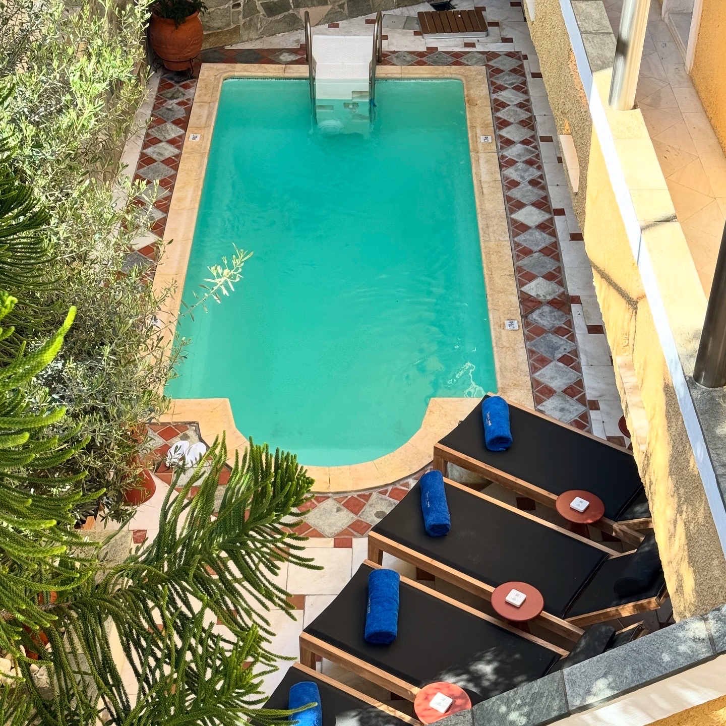 Θέλετε να κολυμπήσετε νωρίς το πρωί πριν φύγετε για την παραλία; Η μια τελευταία βουτιά πριν την βραδινή σας έξοδο στο νησί; Υπάρχει μια πισίνα σας περιμένει, μακριά από το πλήθος, όπου μπορείτε να απολαύσετε ένα φλιτζάνι καφέ ή ένα ποτό και να απολαύσετε τη χαλαρωτικό άγγιγμα του νερού στο σώμα σας.